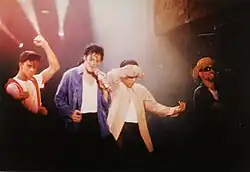 The Victory Tour of 1984 headlined the Jacksons and showcased Jackson's new solo material to more than two million Americans. It was the last tour he did with his brothers.[96] Following controversy over the concert's ticket sales, Jackson donated his share of the proceeds, an estimated $3 to 5 million, to charity.[97] During the last concert of the Victory Tour at the Dodger Stadium in Los Angeles, Jackson announced his split from the Jacksons during "Shake Your Body".[98]