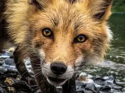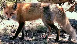 Although European foxes (V. v. crucigera) were introduced to portions of the United States in the 1900s, recent genetic investigation indicates an absence of European fox mitochondrial haplotypes in any North American populations.[27] Additionally, introduced eastern North American red foxes have colonised most of inland California, from Southern California to the San Joaquin Valley, Monterey and north-coastal San Francisco Bay Area (including urban San Francisco and adjacent cities). In spite of the red fox's adaptability to city life, they are still found in somewhat greater numbers in the northern portions of California (north of the Bay Area) than in the south, as the wilderness is more alpine and isolated. The eastern red foxes appear to have mixed with the Sacramento Valley red fox (V. v. patwin) only in a narrow hybrid zone.[28] In addition, no evidence is seen of interbreeding of eastern American red foxes in California with the montane Sierra Nevada red fox (V. v. necator) or other populations in the Intermountain West (between the Rocky Mountains to the east and the Cascade and Sierra Nevada Mountains to the west).[29]