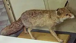 Satunin | 1906 | A small subspecies weighing 4 kg; its maximum skull length is 132–39 mm in males and 121–26 mm in females. The fur is rusty grey or rusty brown, with a brighter rusty stripe along the spine. The coat is short, coarse and sparse.[7] | Geok Tepe, Aralsk, Kazakhstan | |