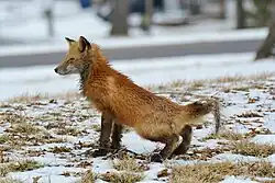 - ^ Contesse, P.; Hegglin, D.; Gloor, S.; Bontadina, F.; Deplazes, P. (2004). "The diet of urban foxes (Vulpes vulpes) and the availability of anthropogenic food in the city of Zurich, Switzerland". Mammalian Biology. 69 (2): 81–95. Bibcode:2004MamBi..69...81C. doi:10.1078/1616-5047-00123.