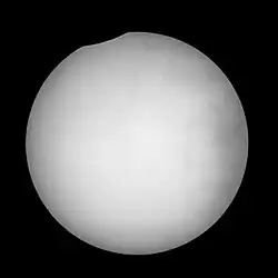 - First contact—when the Moon's limb (edge) is exactly tangential to the Sun's limb.