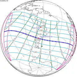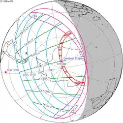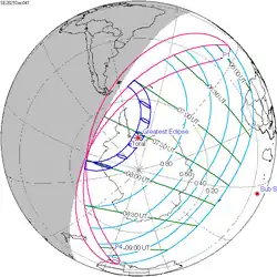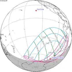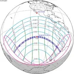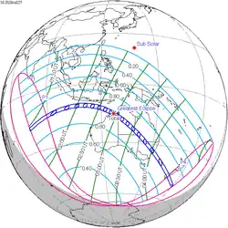 - The midpoint of the eclipse being near the subsolar point (the part of Earth closest to the Sun).