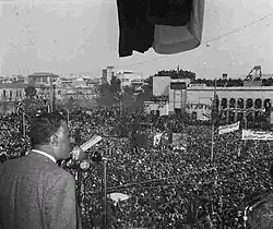 The first law passed (Law 134; passed 4 September 1958) was in response to concern about peasant mobilization and expanding peasants' rights.[90] This was designed to strengthen the position of sharecroppers and agricultural laborers in relation to land owners.[90] This law led to the creation of the Ministry of Labor and Social Affairs, which announced the implementation of new laws that would allow the regulation of working condition especially for women and adolescents, set hours of work, and introduce the principle of minimum wage for paid laborers and an equitable division of harvest for sharecroppers.[91] Furthermore, it obligated landlords to honor both written and oral contracts, established collective bargaining, contained provisions for workers' compensation, health, housing, and employment services.[90] Law 134 was not designed strictly to protect workers. It also acknowledged the rights of landlords to form their own syndicates.[90]