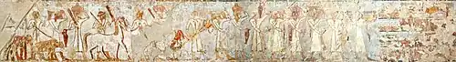 Aleppo and Damascus are among the oldest continuously inhabited cities in the world.[43] Yamhad (modern Aleppo) dominated northern Syria for two centuries,[44] although eastern Syria was occupied in the 19th and 18th centuries BC by the Old Assyrian Empire ruled by the Amorite dynasty of Shamshi-Adad I, and by the Babylonian Empire which was founded by Amorites. Yamhad was described in the tablets of Mari as the mightiest state in the near east and as having more vassals than Hammurabi.[44] Yamhad imposed its authority over Alalakh,[45] Qatna,[46] the Hurrians states, and the Euphrates valley down to the borders with Babylon.[47] The army of Yamhad campaigned as far away as Dēr on the border of Elam (modern Iran).[48] Yamhad was conquered and destroyed, along with Ebla, by the Hittites from Asia Minor circa 1600 BC.[49] From this time, Syria became a battle ground for various foreign empires, these being the Hittite Empire, Mitanni Empire, Egyptian Empire, Middle Assyrian Empire, and to a lesser degree Babylonia. The Egyptians initially occupied much of the south, while the Hittites and the Mitanni occupied much of the north. However, Assyria eventually gained the upper hand, destroying the Mitanni Empire and annexing huge swathes of territory previously held by the Hittites and Babylon.