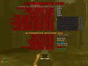 The Alternative HUD menu regroups all options related to the alternate HUD. Its MENUDEF name is AltHUDOptions.
