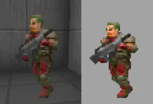 - Initially create your asset to be squished, like vanilla Doom assets were, so that pixel stretching renders them to the correct size. For example, if you want to create a sprite that appears as a 64x64 square, you need to make it around 64x53 pixels (53 * 1.2 = 63.6 — close enough).