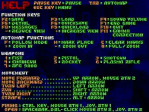The info menu, also called Read this! menu in shareware Doom, displays help screens generally followed in shareware or demo versions of the IWADs by order information to buy the registered game. Its MENUDEF name is ReadThisMenu and it can be summoned with the menu_help console command (bound to the "F1" key by default).