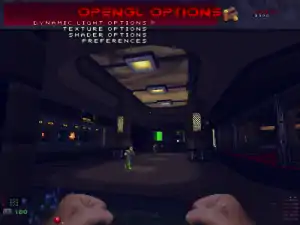 The OpenGL options menu allows to access the various submenus that control how the game is displayed when using the OpenGL renderer. Its MENUDEF name is OpenGLOptions.