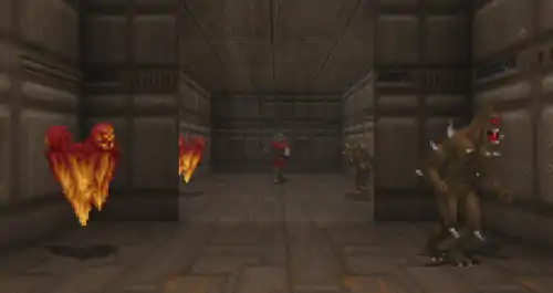 Sprite shadows are a GZDoom-specific feature added in GZDoom 4.6.0 that allows actors to cast shadows similar to Build engine games such as Duke Nukem 3D. They work by creating a copy of the actors' sprite that is set to the Stencil render style, made black, set to an alpha of 0.5, and crushed to 15% the Y scale of the original sprite, then drawn behind all other actor sprites.